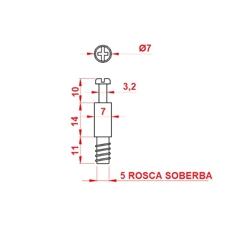 Parafuso Minifix Rosca Soberba